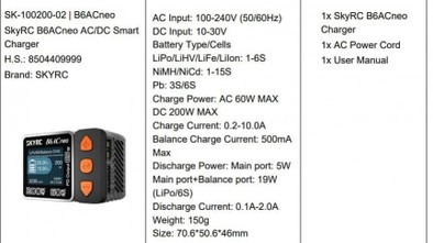 Sky RC BC6ACneo AC/DC Smart Charger (SCR-318) $90 (CDN) | Sky RC B6neo DC Smart Charger (SCR-319) $65 (CDN) IN STOCK |