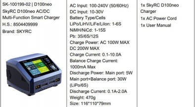 SkyRC D100neo AC/DC Dual Battery Smart Charger (SCR-320) $420 (CDN) | |