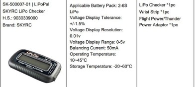 XQ-POWER XQ-S8045D waterproof servo (SCR-316) 0.106 sec/.60* and 667 oz-in at 8.4 volts $65 (CDN) | SkyRC LiPoPal LiPo Checker (SCR-317) $25 |