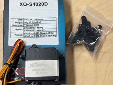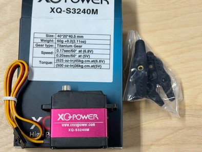 XQ-POWER XQ-S3240M waterproof servo (SCR-314) 0.2 sec/60* and 500 oz-in at 5 volts $65 (CDN) | XQ-POWER XQ-S4020D waterproof servo (SCR-315) 0.13 sec/60* and 302 oz-in at 6 volts $75 (CDN) |